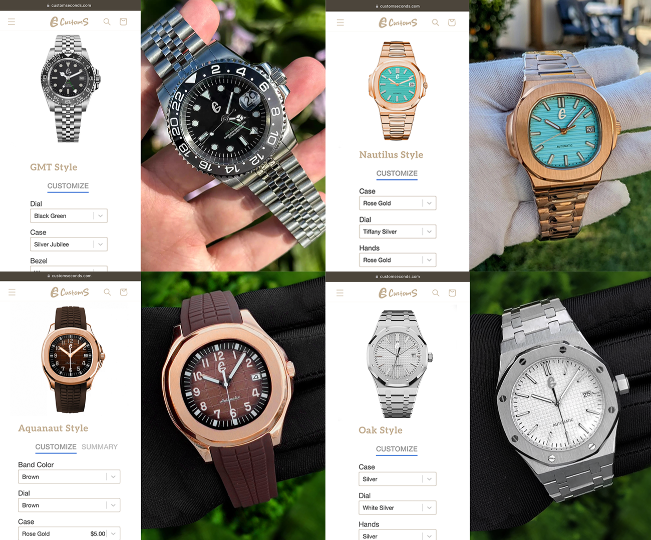 from 36 reviewsReceived my custom Aquanaut today. Very quality piece. Awesome to have a one of a kind statement watch that only I have! Great communication from Custom Seconds. I would highly recommend to anyone looking to have a custom watch made.